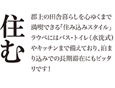 あなたのライフルタイルに合った滞在スタイルで、田舎暮らしを十分にご堪能ください。